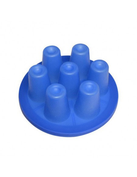 Een siliconen hulpstuk voor het gelijktijdig bedrukken van zes 45 ml. shot glaasjes in de Multi 3D Vacum pers. Dankzij het siliconen hulpstuk en de door de Multi 3D Vacum pers gecreëerde onderdruk wordt de transfer stevig op het glas gedrukt, wat de printkwaliteit direct ten goede komt.